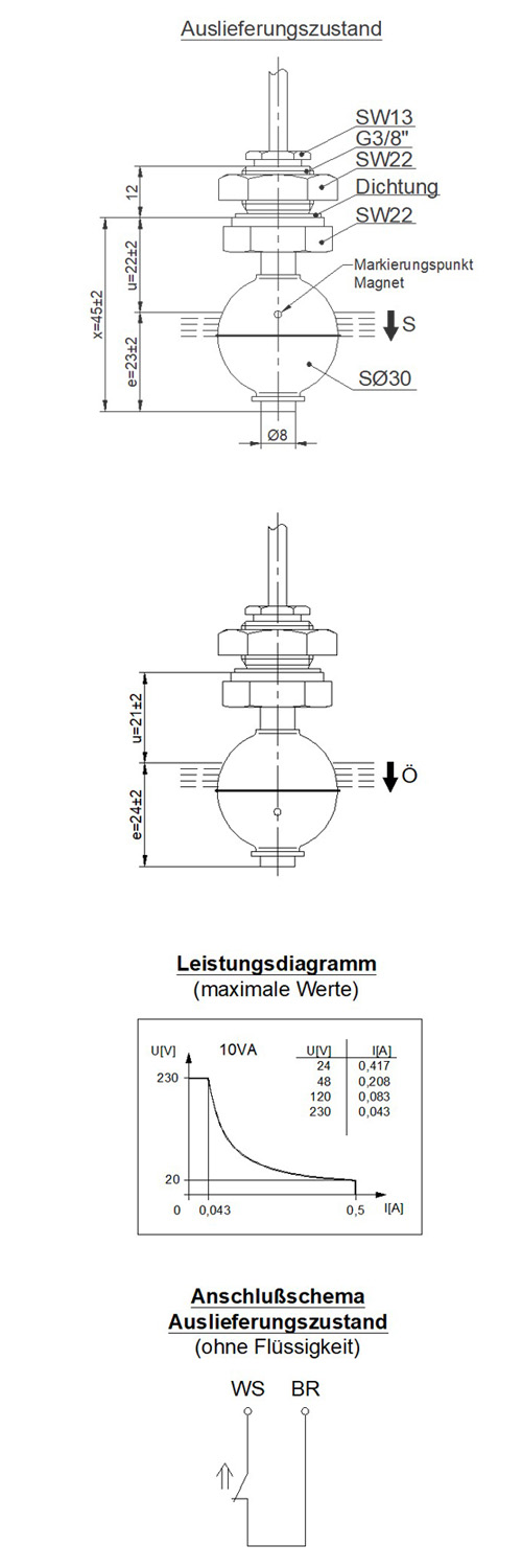 Miniatur-Schwimmerschalter 8 mm