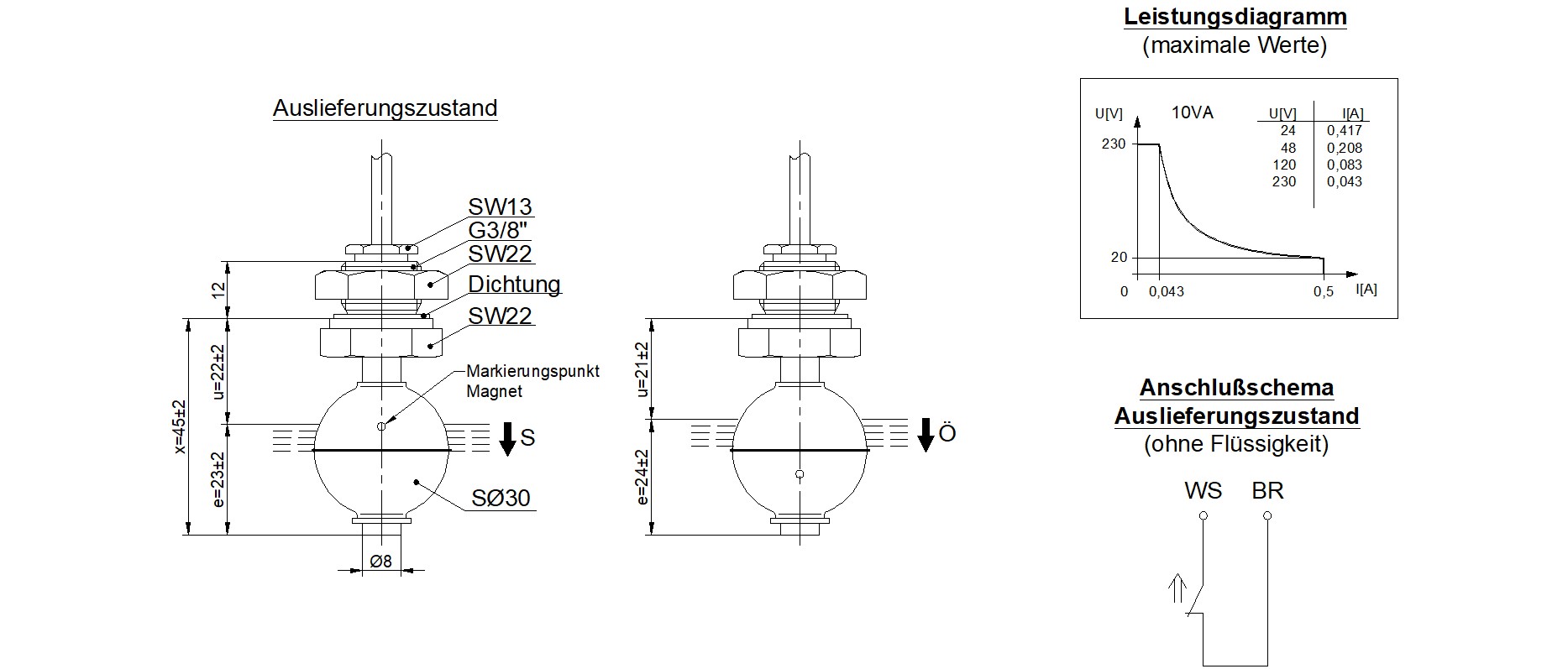Dieser Miniatur-Schwimmerschalter mit 8 mm Schaltrohr wurde für industrielle Anwendungen entwickelt, bei denen hohe Materialbeständigkeit und präzise Schaltpunkte erforderlich sind. Das Gehäuse aus Edelstahl 1.4571 und der Schwimmer aus 1.4301 ermöglichen den Einsatz in anspruchsvollen Medien sowie unter erhöhtem Druck. Die zuverlässige Reed-Technik arbeitet stromlos im Ruhezustand und gewährleistet eine langlebige, störungsarme Grenzstandserfassung. Die vertikale Montage erfolgt über eine kombinierte M12x1 / G3/8-Innengewindelösung, die eine flexible und dichte Installation in unterschiedlichen Gehäuse- und Behältertypen ermöglicht.
