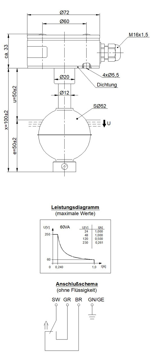 - Komplett aus Edelstahl: Gehäuse und Schwimmer aus 1.4571