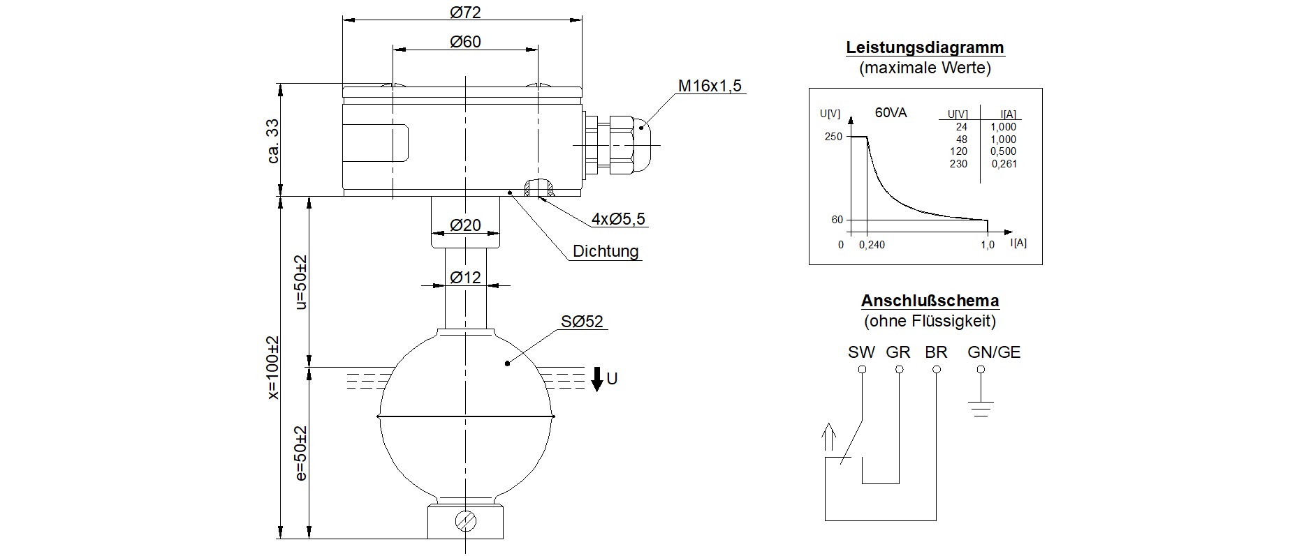Dieser Standard-Schwimmerschalter mit Ø12 mm Schaltrohr ist für hochbelastete Anwendungen ausgelegt, in denen eine vollständig metallische Konstruktion und hohe Druckfestigkeit erforderlich sind. Gehäuse und Schwimmer bestehen vollständig aus Edelstahl 1.4571, wodurch der Sensor ideal für korrosive Medien, industrielle Prozesse und erhöhte mechanische Beanspruchungen geeignet ist. Die präzise Reed-Technik arbeitet ohne Dauerstrom und ermöglicht eine zuverlässige, langlebige Grenzstandserfassung. Die vertikale Montage erfolgt sicher und dicht über das Gehäuse von außen, was den Einsatz in anspruchsvollen Behälter- und Anlagenumgebungen erleichtert.