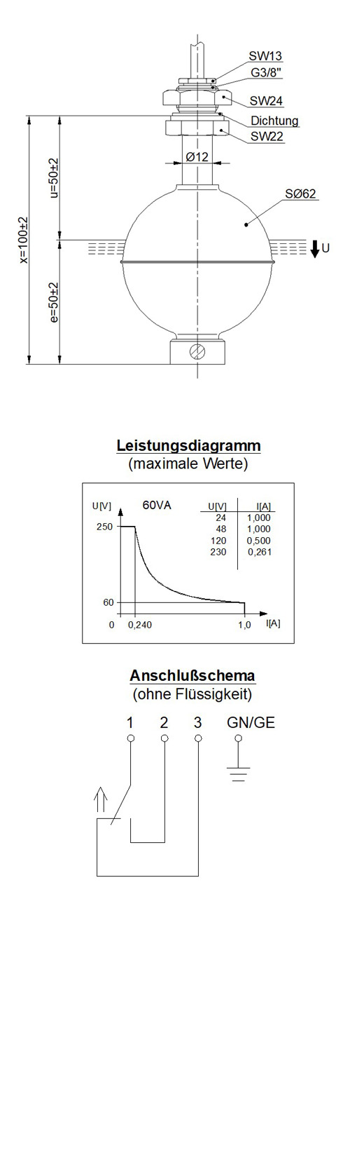 Dieser Standard-Schwimmerschalter mit Ø12 mm Schaltrohr eignet sich für industrielle Anwendungen, bei denen korrosionsbeständige Materialien und erhöhte Betriebsdrücke erforderlich sind. Gehäuse und Schwimmer bestehen vollständig aus Edelstahl 1.4571, wodurch der Sensor zuverlässig in druckbelasteten oder aggressiven Flüssigkeiten eingesetzt werden kann. Die bewährte Reed-Technik arbeitet ohne Dauerstrom und ermöglicht eine präzise und langlebige Grenzstandserfassung. Der vertikale Einbau erfolgt von innen über ein G3/8-Gewinde in Kombination mit einem PVC-Anschlusskabel.